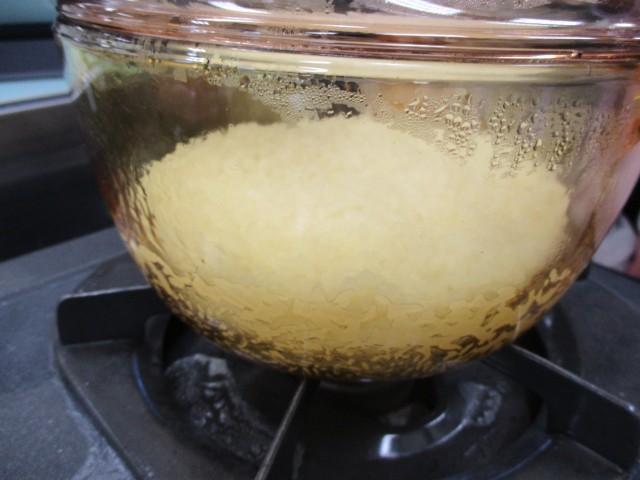 透明の鍋を使い、米の変化を確認しながら、調理実習を進めていました。