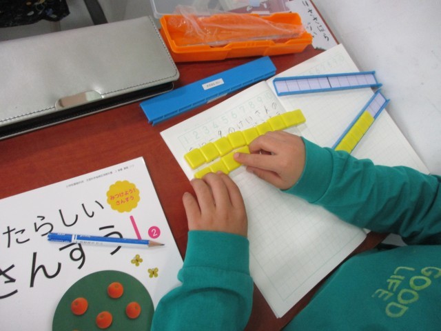 ブロックを動かしたり図を書いたりしながら、どのように考えるかそれぞれが考えていました。