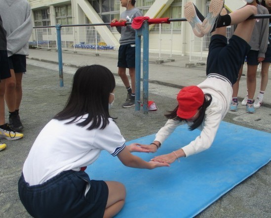友達と支え合いながら技ができるようにしていきます。