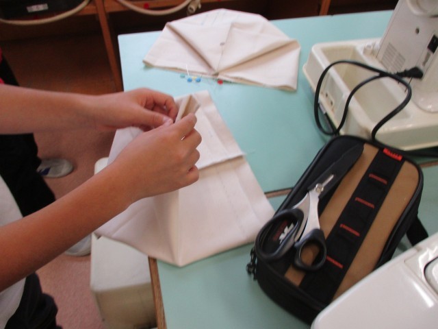 6年生は家庭科でミニトートバッグづくりに取り組んでいます。