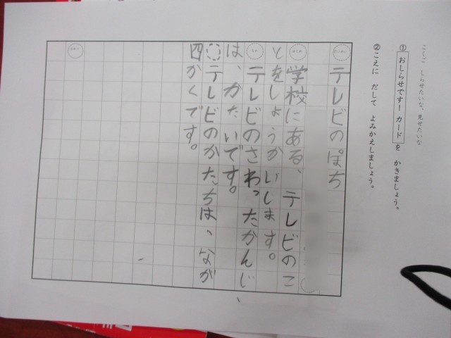 1年生は国語で「しらせたいな 見せたいな」という教材を読み学習を進めています。