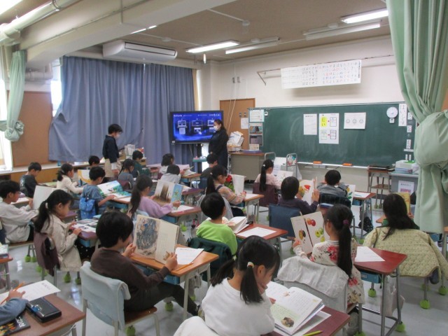 読書週間中ということで、普段図書室でお仕事している司書の先生が教室に来てくださり、「あじみ読書」を行いました。