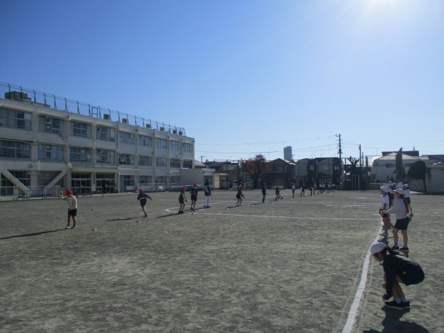 昨日に引き続き、今日も2クラス、ジャイアンツアカデミーの方々をお招きして、体育の学習を行いました。楽しくボールとふれあいながら、体育の学習を行いました。