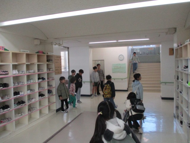 南門や昇降口前、下駄箱近くなど、1年生と6年生が元気よく登校してくる児童に挨拶をしています。気持ちよい一日が今日もスタートしました。