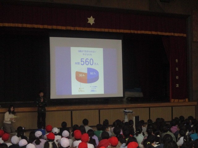 代表委員会がスライドを作成して全校児童に丁寧に説明しました。