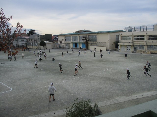 クラスごとに遊びを決めて、校庭を広々と使い、朝の時間を過ごしました。
