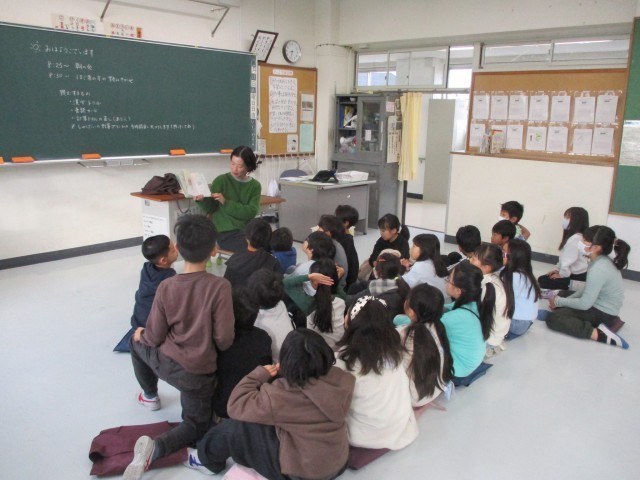 朝の時間、3・4年生の教室では保護者の方による読み聞かせが行われました。