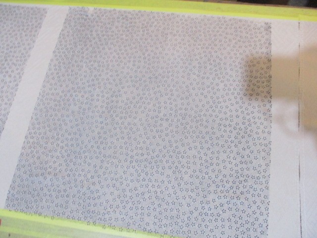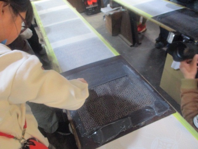 色のついたのりを型紙の上から塗って生地にうつします。
