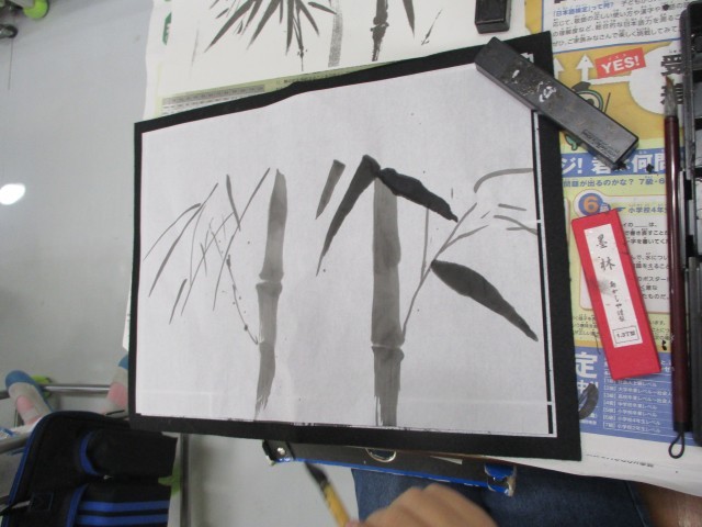 みんな先生の話のポイントをしっかりとおさえ、オリジナルの水墨画を描くことができていました。
