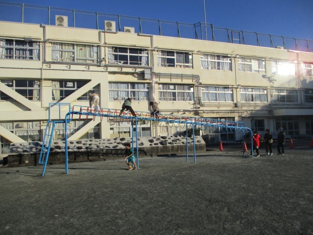 寒い冬の朝ですが、楽しみに学校に登校してくる児童も多く、元気よく校庭で遊んでいます。