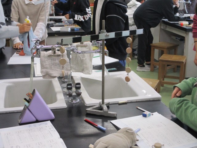 6年生が理科室で「てこのはたらき」の学習をしていました。