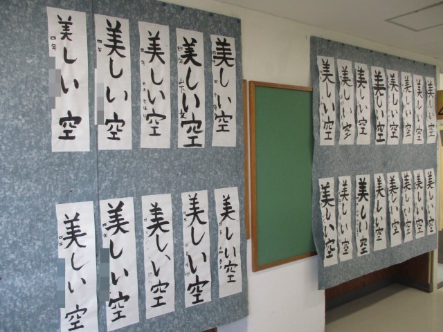 3年生は「つよい力」、4年生は「美しい空」と書きました。
