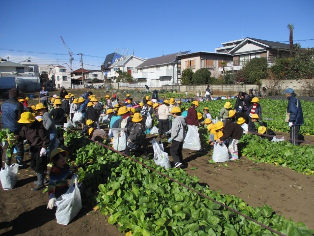 1年生が世田谷区の「自然の教室」で管理している畑に出かけ、小松菜の収穫体験を行いました。