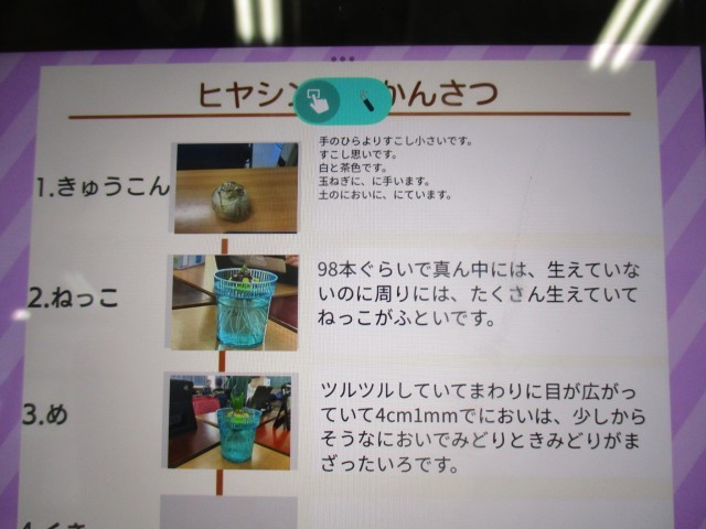 1年生は生活科の学習で班でヒヤシンスを育てています。