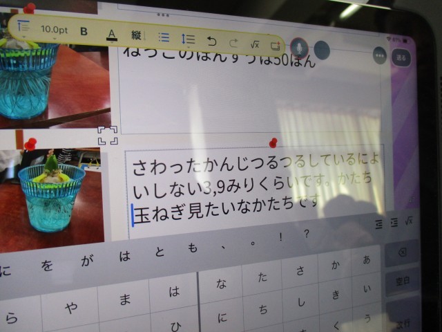 みんなタブレット端末を使いながら細かいところも観察し、まとめています。
