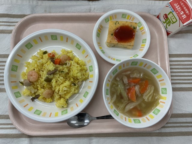 パエリア スペイン風オムレツ 野菜スープ 牛乳