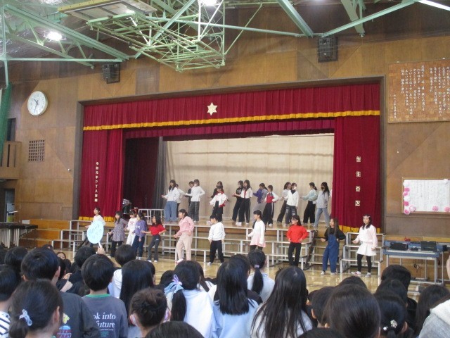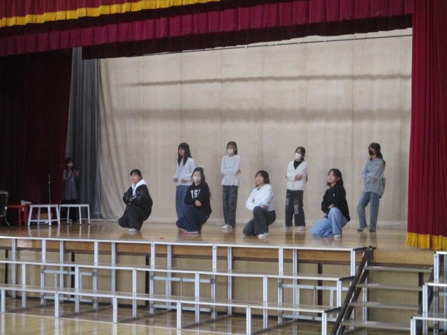 ダンスクラブの一年間の成果を体育館で発表しました。