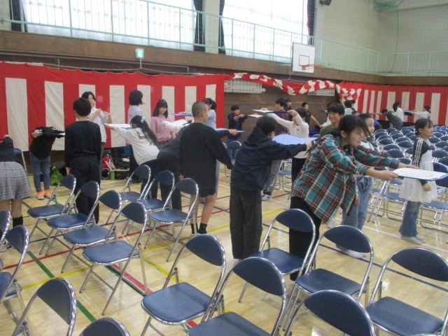 友達の動きを見てよかったところを伝えることで、一人一人がしっかりと校長先生から授与できるようになります。