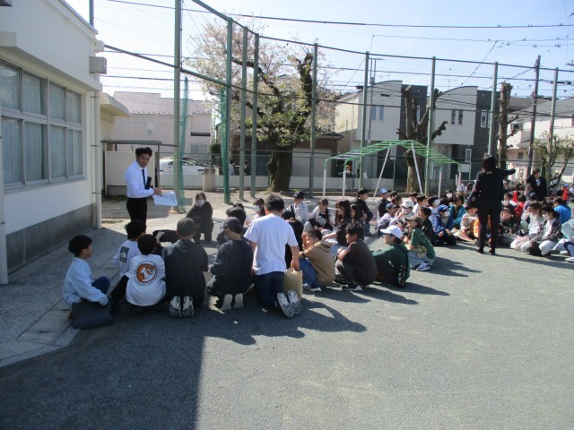 学年で担任の先生と挨拶したり、クラスごとに担任の先生と靴箱の確認をしたりしました。