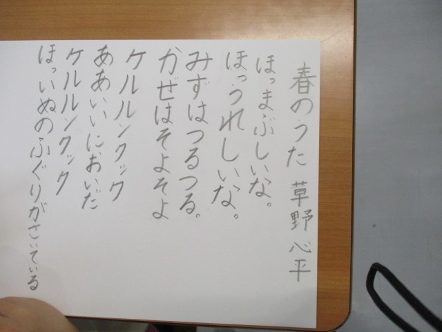 「春のうた」の詩を音読したり、詩を写して書き、様子を表すイラストを描いたりしていました。