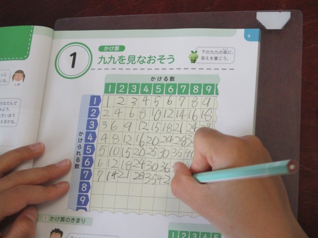 みんな2年生で覚えた九九を口にしながら、どんどん枠に書き込んでいました。