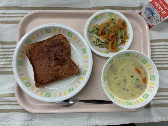 ティラミストースト コーンチャウダー パリパリサラダ 牛乳