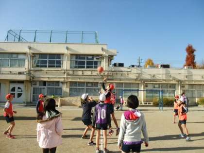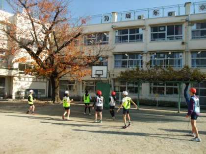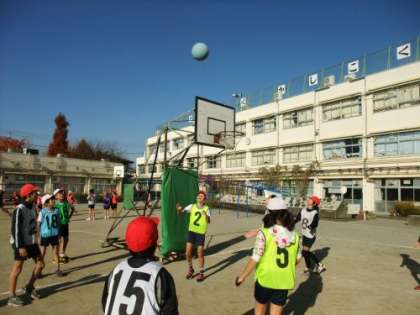 6年生が1時間目からバスケットボールをやっています。寒さなど