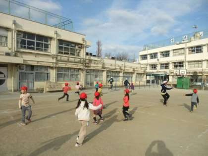 今日から6年生との交流が始まりました。今朝は1年生が6年生と遊んで