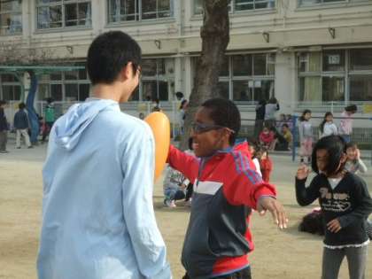 アメリカから伝わったゲームだそうです。風が強くてちょっと大変でした。