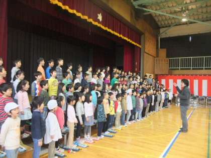 入学式に行う歓迎の言葉の練習をしていました。大きな声ではっきりと