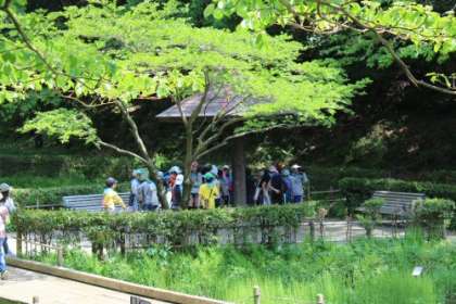 新緑の公園の中、来ている団体は弦巻小学校だけでした。公園を独り占め