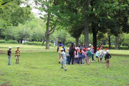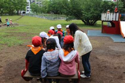 公園の木々や芝生も姿を変えていました。長い道のりを子どもたちは