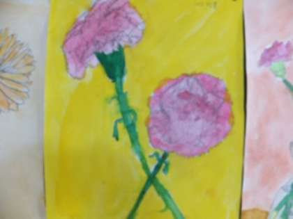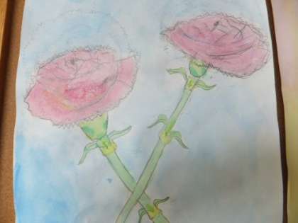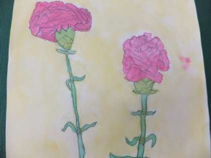 図工の時間に描きました。その中で、カーネーションを描いた作品を