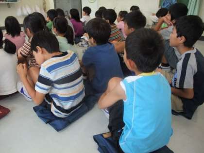 聞いています。今日は3年生でした。真剣に聞いていました。