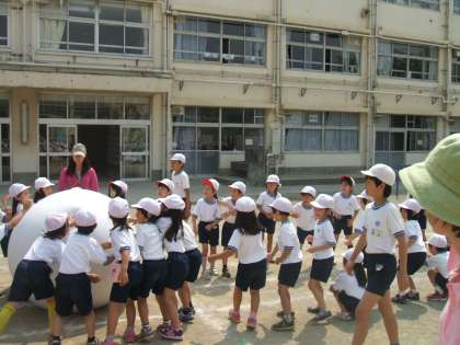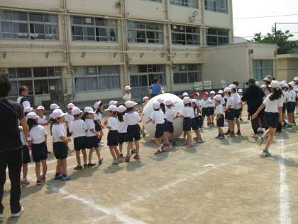 今日の1時間目は、最後の全校練習でした。新しくなった大玉を使って、大玉ころがしの競技練習を行いました。1回戦赤、2回戦白が勝ち、勝負は引き分けに終わりました。今日体育着を持って帰ります。洗濯をして、25日当日持たせてください。赤白帽を忘れずにお願いします。