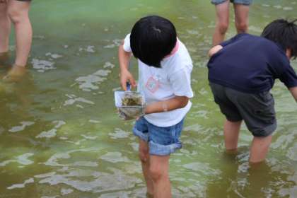 とれます。最初に1年生が、その後2年生がヤゴの救出をします。