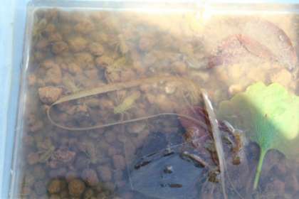 たくさんのヤゴをとることができました。サア、これから観察開始です。