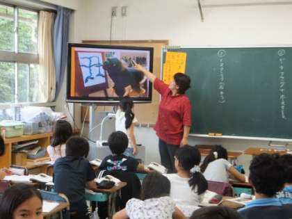 今日の学習では、3枚の写真を見ながら、想像力を駆使しておもしろい