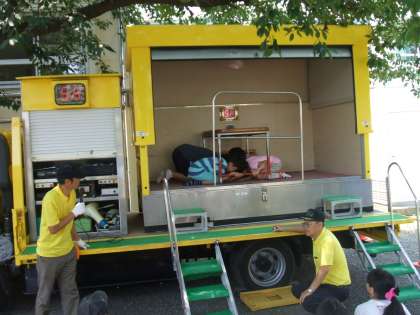 今日、6年生が起震車体験をしました。「なまず号」に乗り、地震が起こったっとの想定で、車が揺れ始めます。一斉に机の下に頭を入れ、頭を守り、机の脚をしっかり押さえて揺れが収まるまで待ちます。思ったより揺れが激しいので皆びっくりしていました。