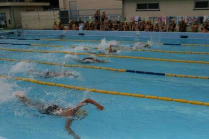 親しんだプールで記録会です。自分の精いっぱいの泳ぎで記録に挑戦です。