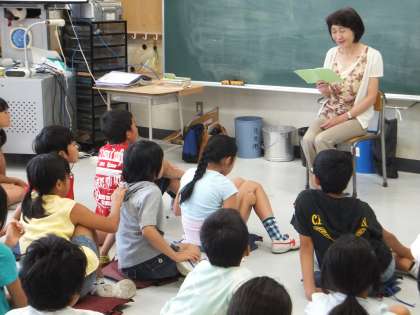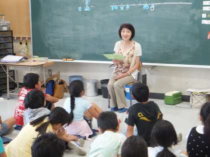 今日は、朝の読書の時間から、素話の会の方が着てくださって、4年生4クラスに素話をしてくださいました。暗記しているお話を、子どもたちの顔や反応を見て、お話してくださいました。どのクラスの子どもたちも話に耳を傾けていました。