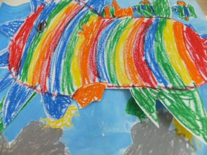 図工の時間にこんな魚がいたら楽しいなと思いながら描きました。