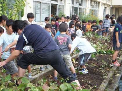 10月7日(月)・学級園のサツマイモ掘り 2年