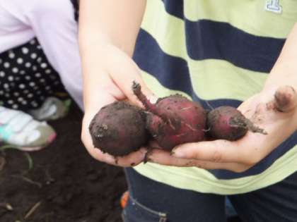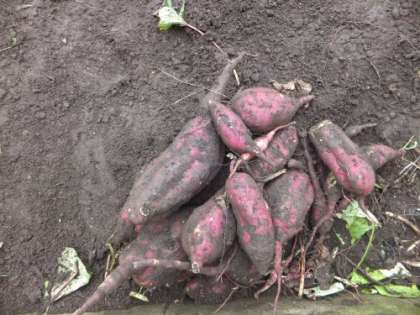 作ります。その前に、岩石園の所の学級園のサツマイモを掘りました。