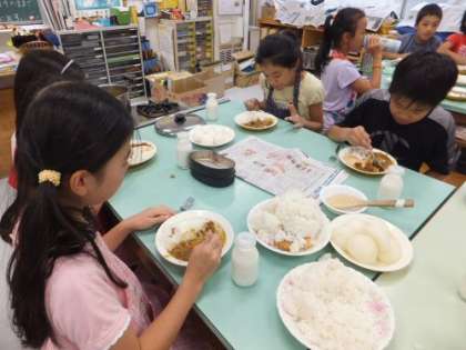 夕食は、自分たちで作ったご飯とカレーです。今日からその練習が