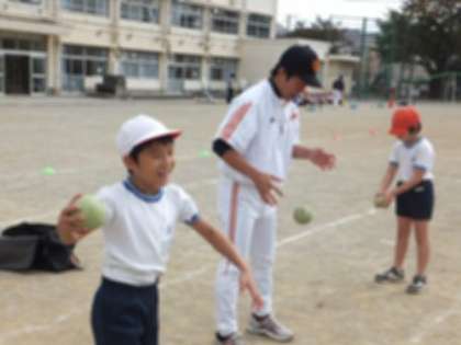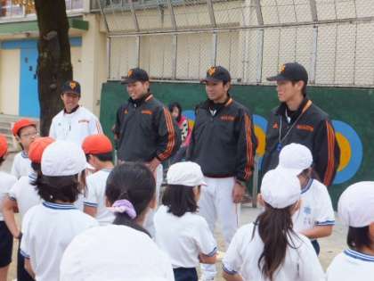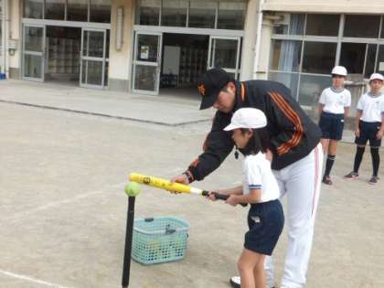 進んでいます。今日は、ジャイアンツの選手が4人来て、Tボールの