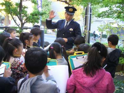 2年生が、生活科の学習で「まちたんけん」に出かけました。小泉公園を管理されている駒沢明和会の方や世田谷交番の警察官の方から、仕事内容や活動の様子をうかがうことができました。ありがとうございました。