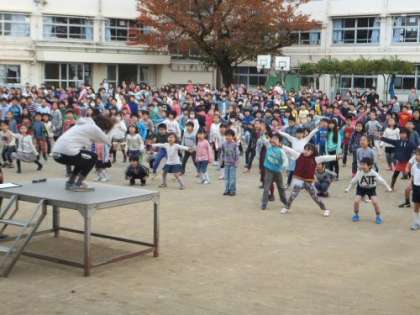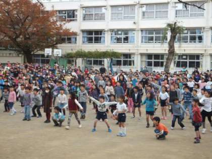 全校の児童が、体ほぐしの運動に挑戦しました。楽しい運動でした。