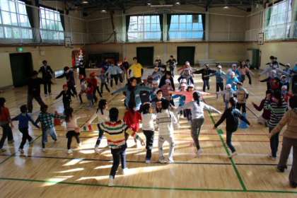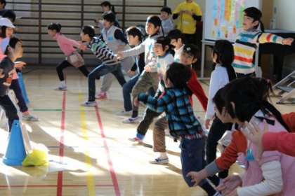 三宿小・山崎小・旭 小・弦巻小の4校の友だちと、ダンスやかけっこ