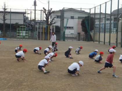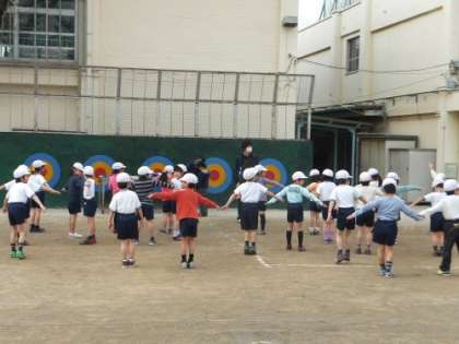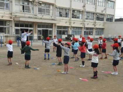 大寒に入った今日の3時間目、校庭では1年生が元気に体育に